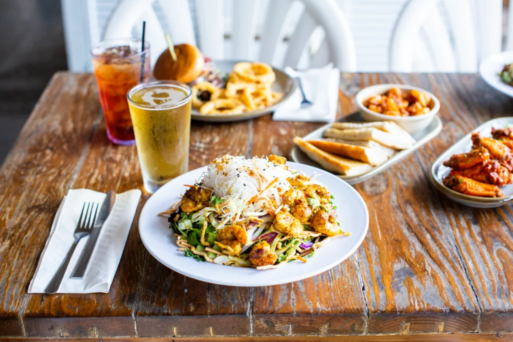 Enjoy a wide variety of seafood, burgers, sandwiches, apps, salads, and more! Savor burgers, wings, or our famous fish tacos. Dine inside, out on the spacious open-air deck, or under the covered patio. Pair your meal with refreshing cocktails or draft beer and soak in the laid-back atmosphere.